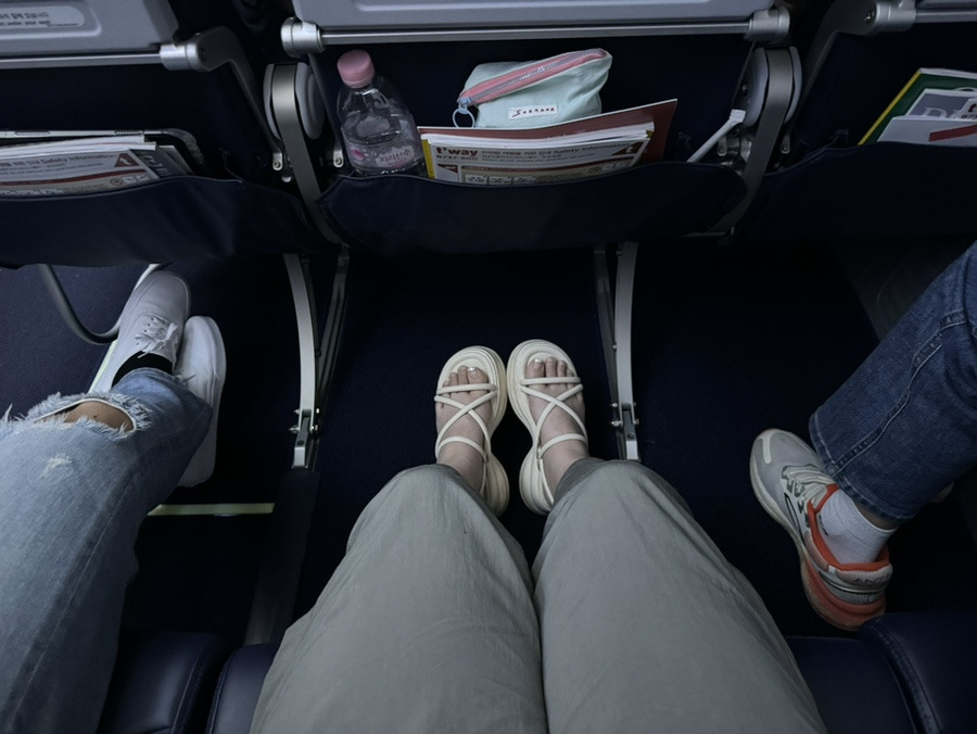 - 넓은 레그룸: 저가항공사(LCC) 특유의 좁은 간격에서 벗어나 다리를 쭉 뻗을 수 있을 만큼 공간이 여유롭습니다.